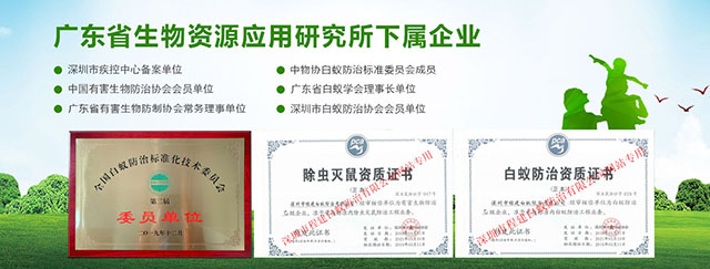 專注于徹底根治、防治結(jié)合,售后跟蹤服務(wù),專業(yè)服務(wù)工程師有豐富實戰(zhàn)經(jīng)驗超過十年。持有專業(yè)資格證書認證:“有害生物防制服務(wù)機構(gòu)服務(wù)能力證書B級”、“白蟻防治服務(wù)機構(gòu)服務(wù)能力證書B級”所有員工持有“深圳市白蟻防治上崗證”和“深圳市除蟲滅鼠上崗證”,雙資格證上崗服務(wù)。榮獲過:“優(yōu)質(zhì)服務(wù)示范單位”、“白蟻防治服務(wù)信譽AAA級單位”、“深圳市白蟻防治先進單位”、“深圳市十大白蟻防治品牌”、“深圳市殺蟲公司”、“深圳市消殺公司”先進單位等榮譽。